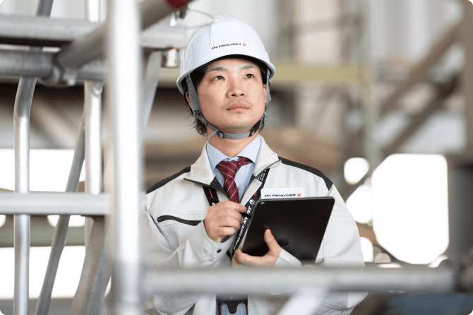 JALファシリティーズは、JALグループ唯一の建設会社として、施設面から快適な空の旅や飛行機の安全運航を陰で支えており、多くのお客さまから厚い信頼を得ています。